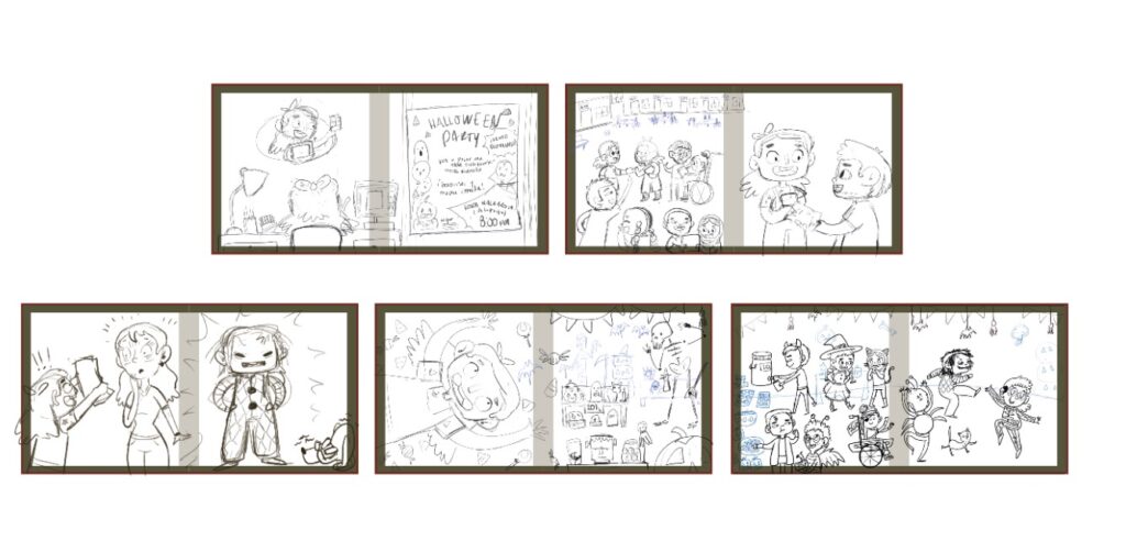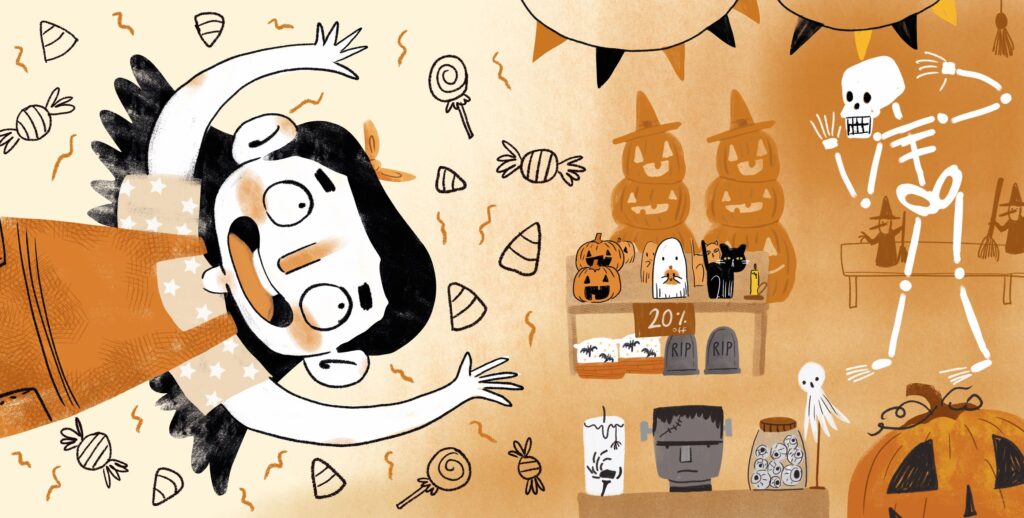 Ilustraciones de mi reto de octubre. ¡Preparándose para una fiesta de Halloween!